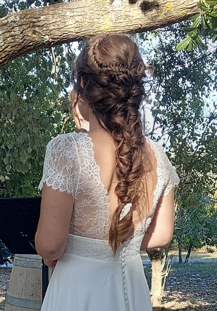 J'ai été ravie d'être coiffée par Jennifer pour mon mariage. Elle a su être très douce et à l'écoute de mes envies. Ma coiffure avec la courronne de fleurs était parfaite, elle a bien tenue toute la soirée sur le dancefloor ! Merci Jennifer.