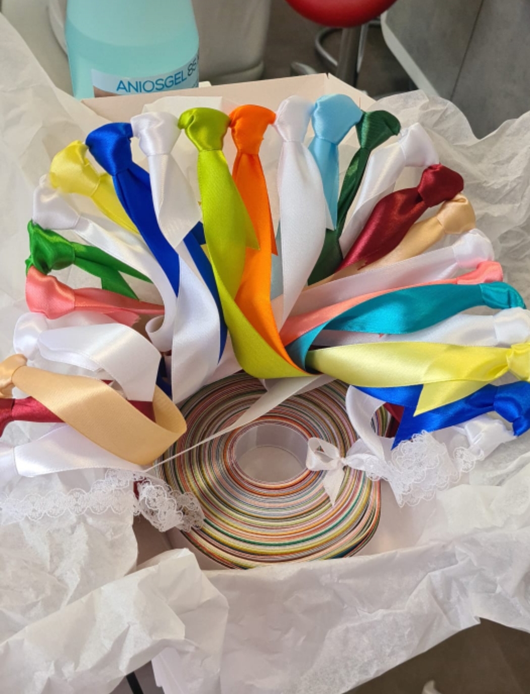 J'ai commandé la ronde des rubans pour mon mariage qui aura lieu le 26/08 prochain. Natalie à été très réactive à chacune de mes demandes. Le colis est emballé avec soin et expédié rapidement. Les rubans sont magnifiques, les couleurs sont éclatantes, et je vais avoir des scrupules à défaire son si jolie travail. Merci beaucoup pour votre gentillesse et votre professionnalisme Je recommande à 1000% les yeux fermés